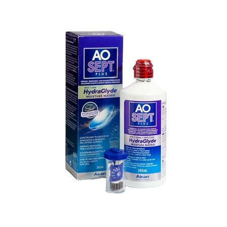 Aosept Plus Hydraglyde® est une solution de décontamination au peroxyde d’hydrogène du laboratoire Alcon pour toutes les lentilles de contact.